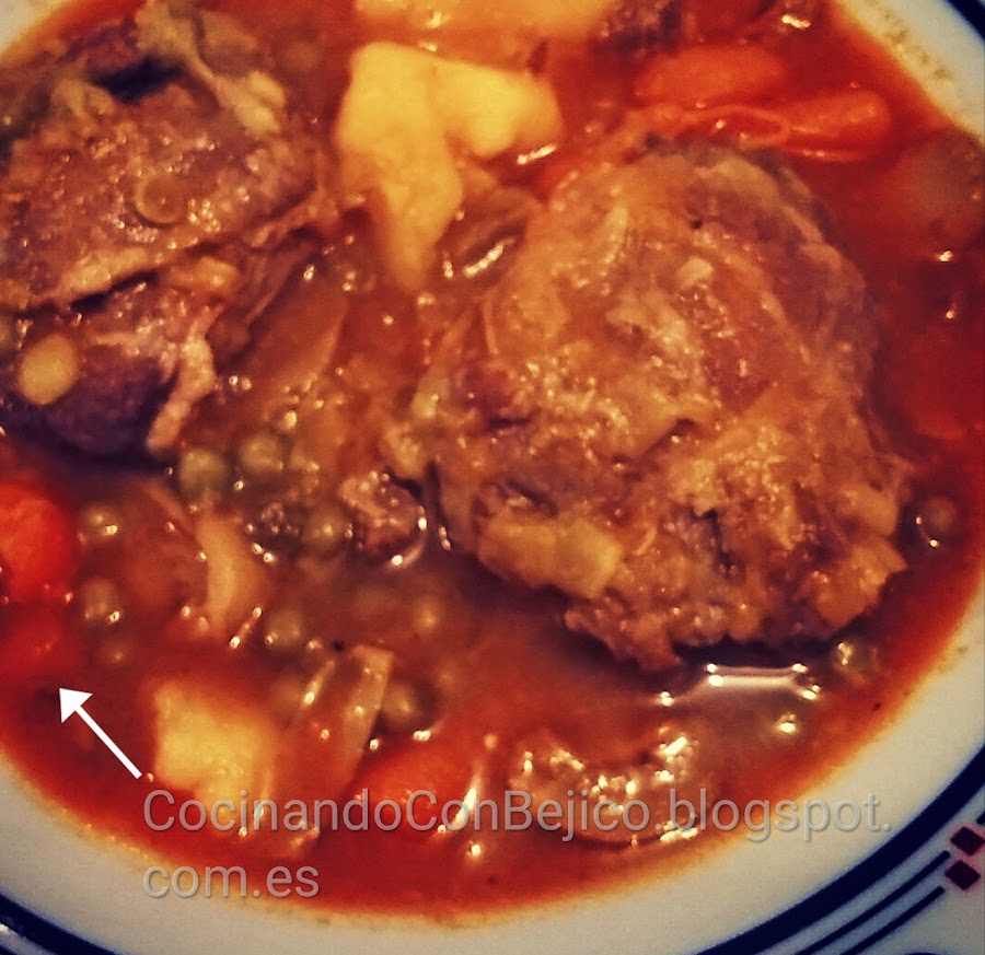 Cubrimos con agua tibia donde hemos disuelto la pastilla de caldo y la cucharada de bovril.