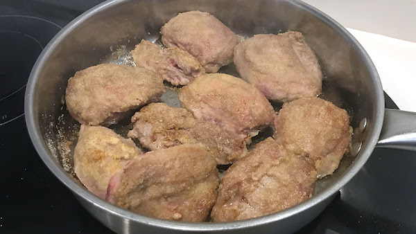Una vez limpios todos los trozos de carne, se pasan por harina. A mi, como sabéis, me gusta usar harina de trigo duro.
