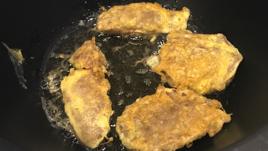 Pasa las carrilleras por huevo batido y después embadurna en la fécula de maíz.
