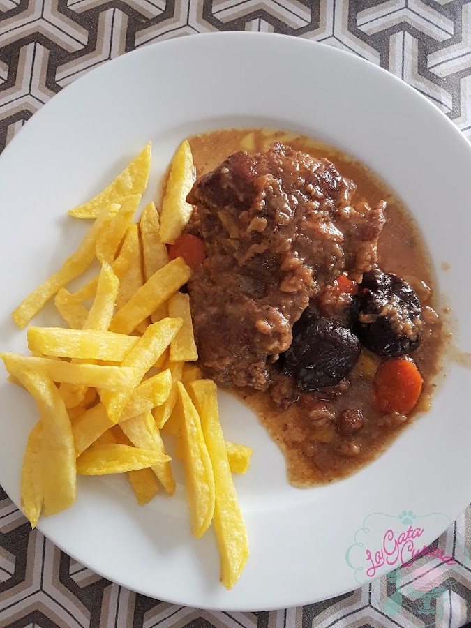 Esta receta y casi todas las de carnes que requieren cocción ya las hago siempre en mi ayudante de cocina, a mí me ha simplificado mucho el trabajo, las preparo como siempre y luego solo tengo que poner la olla y en 5-6 horas tengo unas carnes para quitar el sentido.