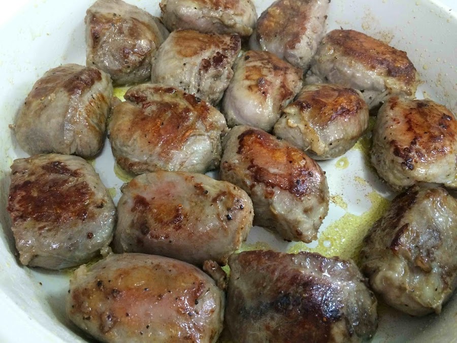 Salpimentamos las carrilleras y las sellamos a fuego fuerte en una cacerola amplia con un poco de aceite de oliva.