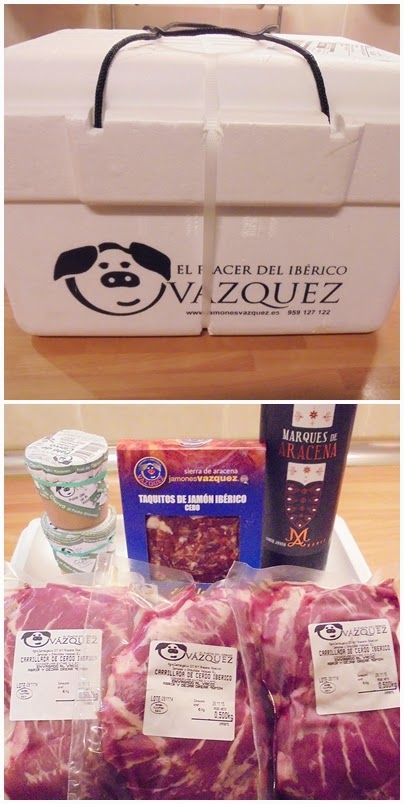 de los que he recibido las carrilleras de cerdo ibérico que te enseño hoy, además de unos tarros de patés de ciervo, taquitos de jamón ibérico y un buen vinito del que daremos cuenta en breve!