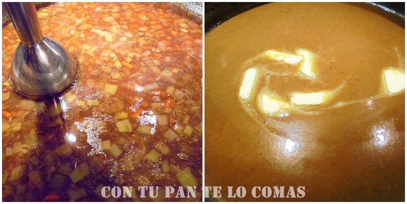 6. Terminamos añadiendo la mantequilla en trocitos para darle más brillo a esta salsa estupenda, no hace falta ponerlo de nuevo al fuego.