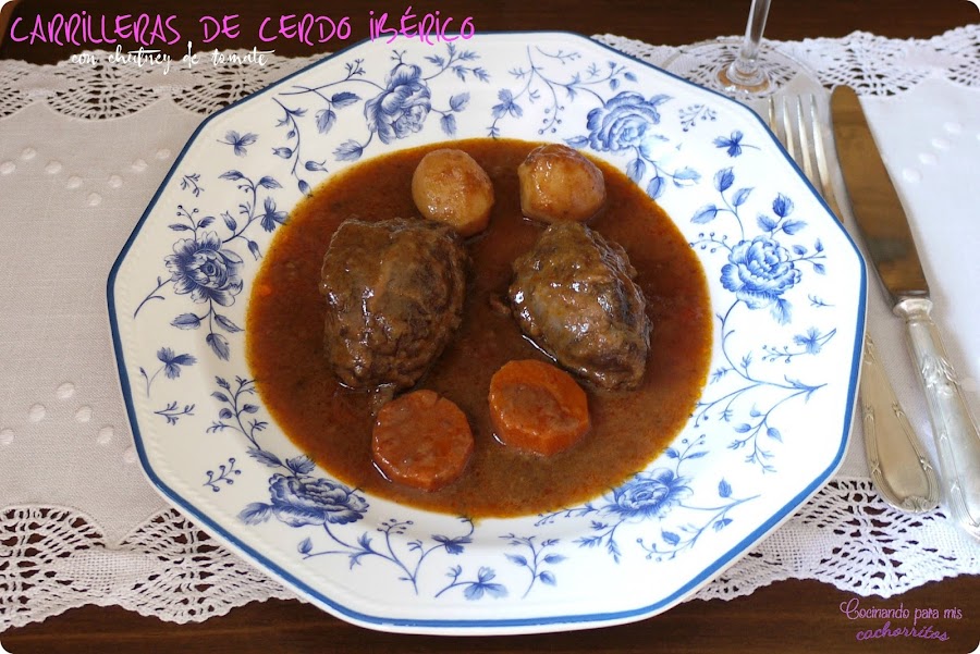 Añadimos las carrilleras y, si es necesario, el agua o caldo hasta cubrirlas.