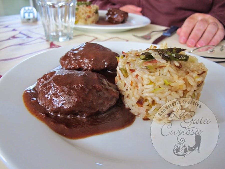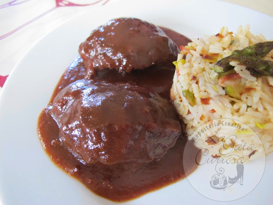 Dejamos reducir un poco la salsa, rectificamos de sal y servimos bien calientes con el arroz salteado o con un buen puré de patatas.