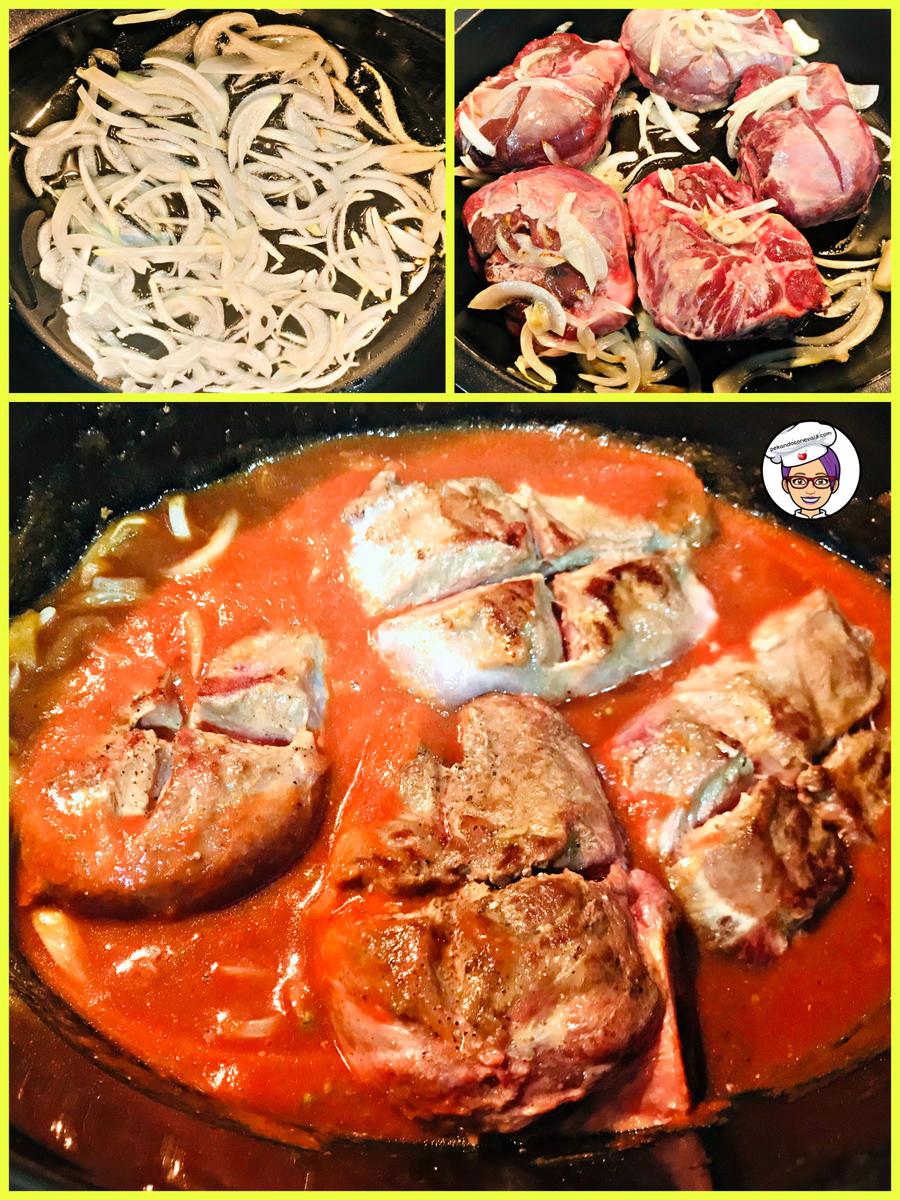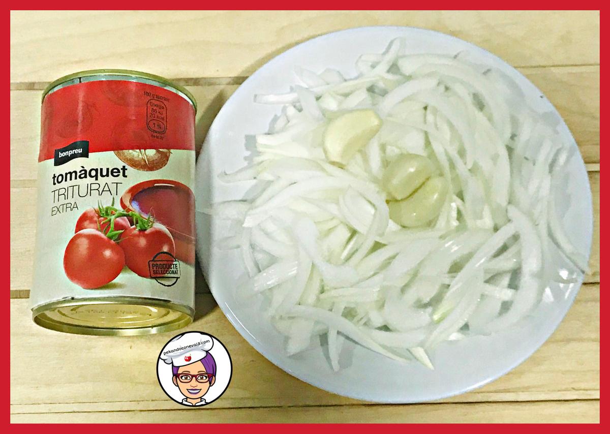 *En la receta de la cual me he basado usa tres cucharadas de tomate frito, yo debido al confinamiento solo salimos a comprar una vez a la semana y no tenia y como dio la casualidad que saque para comer carrilleras lo cambie por tomate natural triturado