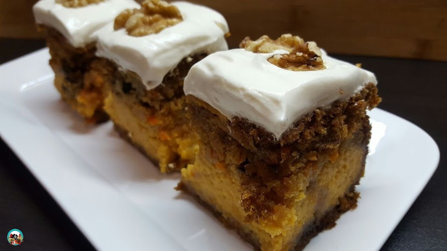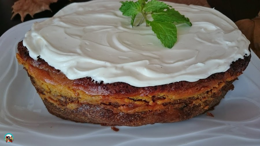 Hoy tengo un clásico de la pastelería americana renovado a mi manera. La tradicional carrot cake o tarta de zanahoria con frutos secos y mi toque personal de calabaza.