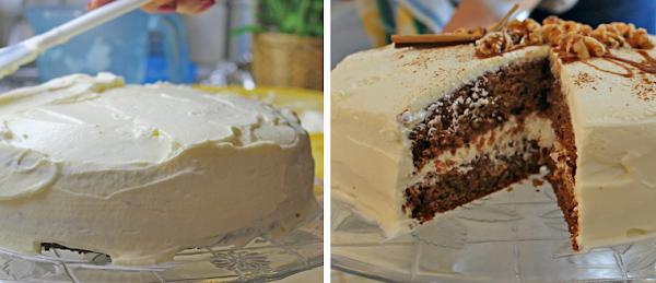 Como estuve varios días por Londres allí probé un carrot cake que no me gustó en absoluto ¿y qué me llevó a querer prepararlo en mi casa? pues que aquel cake original llevaba pasas y piña, que le daba un sabor ácido y dulce excesivo, así que me preparé este carrot cake al gusto. Me llevó mucho mas tiempo del que pensaba y muchos cacharros que fregar, pero ha sido un descubrimiento tartero. Lo llevé para comer con la familia y fue un exitazo. Aun soñamos con el por las noches! así que no te lo pienses mucho y prepáralo! en serio, está riquiiiiiiiiisimo. Tan blandito, húmedo, esponjoso y sabroso... eso sí, dedícale una de esas tardes libres que no tienes nada que hacer porque es súper pesada de hacer.