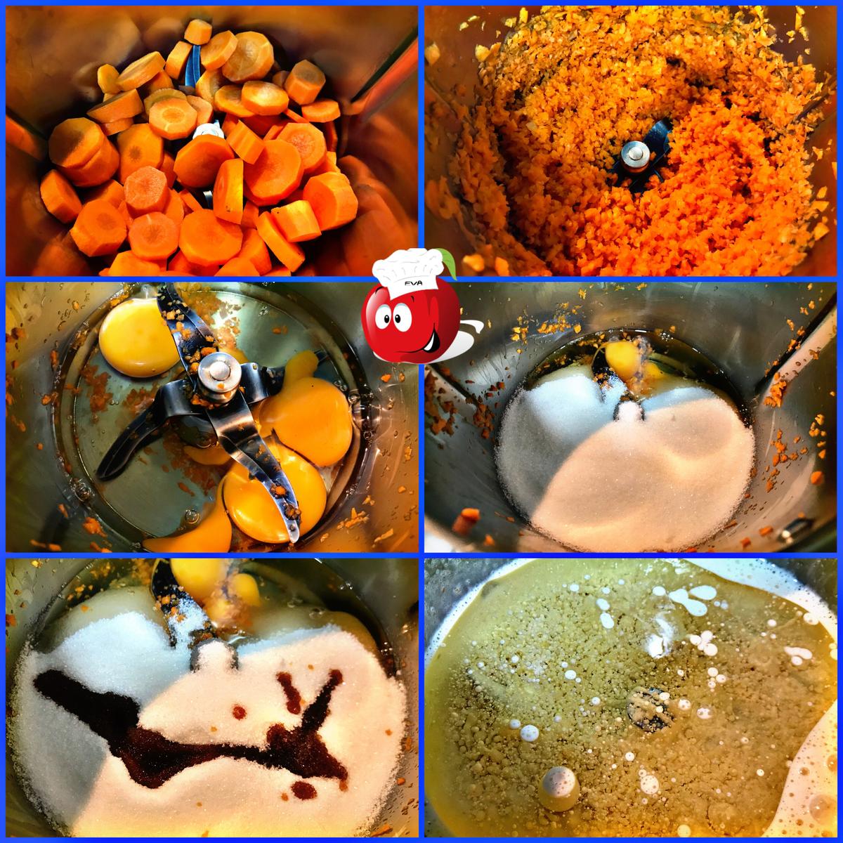 Incorporar 350 gr de aceite, las zanahorias reservadas y mezcla 5 segundos en velocidad 4.