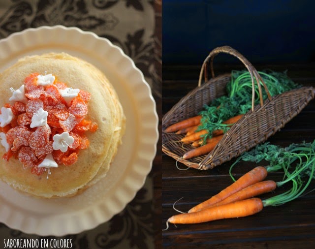 Y pensando en el relleno y la decoración de mi tarta de crepes, se me ocurrió adaptar una receta de la madre de una amiga, Dori (de quien ya os hablé en este post), que hace una tarta de galletas riquíiiisima rellena de zanahorias.