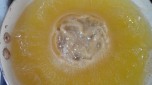 Luego calentamos suficiente aceite para freírlas, yo utilicé un sartén para no necesitar tanto aceite. Colocamos las Cartellates en el aceite por 20 0 30 segundos de cada lado, hasta que estén doraditas, recuerda que para que queden bien deben ser lo suficientemente delgadas.