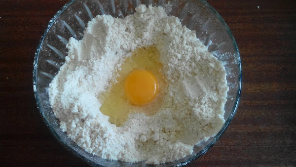 Sobre una mesa o en un recipiente profundo mezclamos harina, sal, miel y aceite de oliva. Quedará un poco grumoso. A esta mezcla agregamos el huevo y comenzamos a amasar.