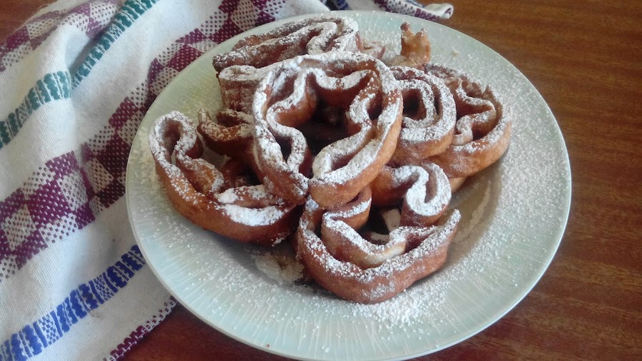 La receta dulce que debíamos elaborar para esta ocasión son las Cartellate, un dulce típico de la región preparados especialmente para la época Navideña, aunque son tan deliciosos que yo sin dudarlo los prepararé nuevamente, son dulces y crujientes, totalmente una delicia para el paladar. Esta vez me quedaron un poco más gruesos de lo que deberían pero como los prepararé de nuevo ya se como armarlos y el grosor ideal de la masa, que es de menos de 1/2 cm.