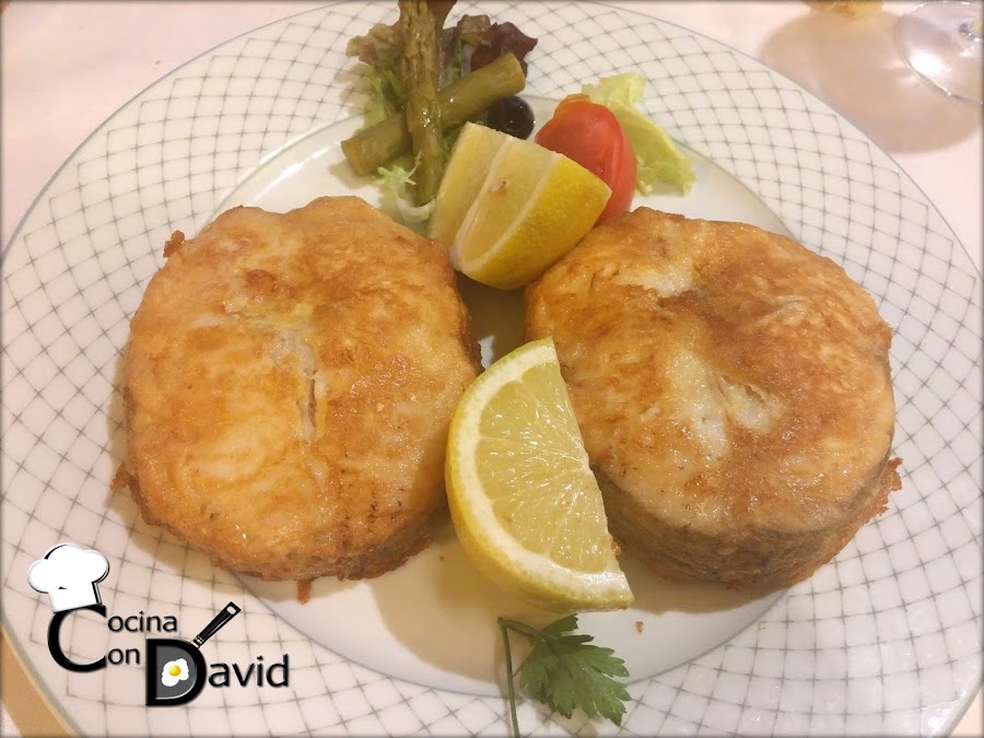 Y como último segundo, "Merluza la romana". Dos tajadas generosas, gruesas, y muy jugosas. Me sorprendió lo buena que estaba. Tan sencillo, y tan rico. La guarnición, la misma que la del salmón, pero la ración igual de generosa.