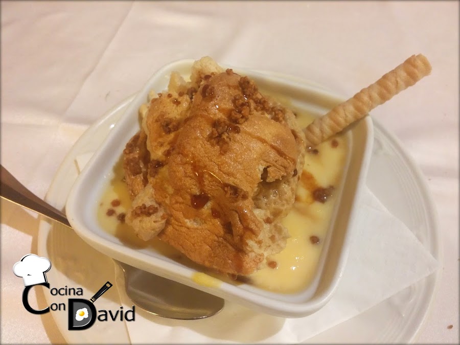 De postre nos pedimos el "Canonigo". Se trata de un postre típico de Liebana. Se trata de unas natillas cremosas coronadas con merengue horneado. El postre, aunque era casero, estaba ya preparado en cámara, y el merengue no estaba demasiado allá. Una pena, porque recién hecho tiene que estar muy bueno.