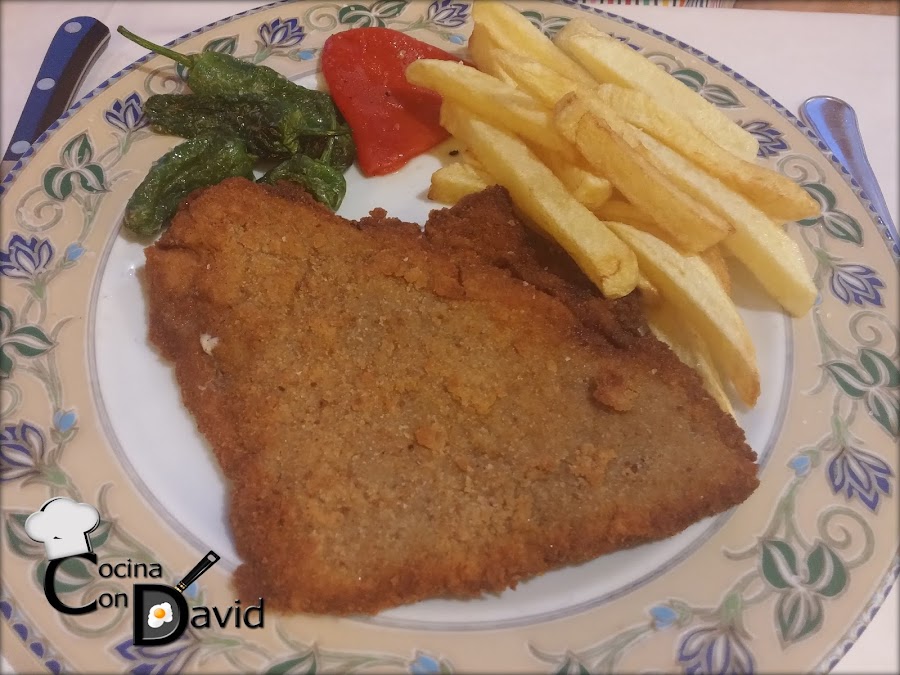 Uno de los segundos fué el "Escalope relleno de jamón serrano y queso". Crujiente, rico de sabor y acompañado de unas patatas fritas caseras, y los dos tipos de pimiento.