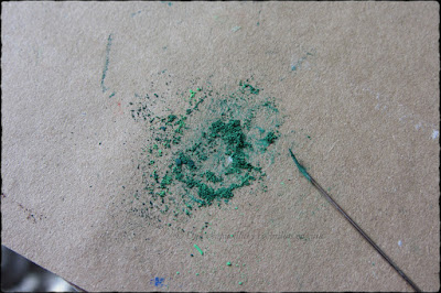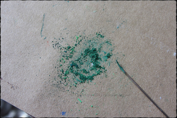 La pinté con efecto un poco envejecido, es decir con algun tono rojizo de aspecto oxido y berdin de humedad hecho con una tiza verde rallada creando polvillo.
