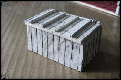 Con el pirógrafo hice unas marcas como de tablas de madera y puse unas tiras de madera a modo de adorno en la tapa. Luego pinté con acrilico blanco un poco diluido en agua.