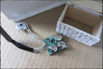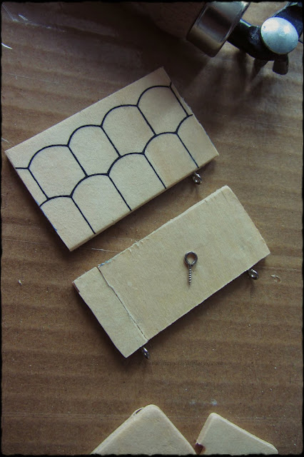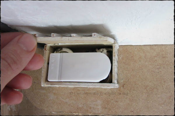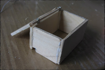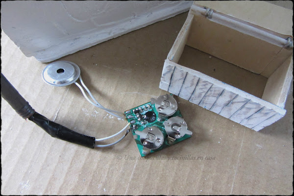Con las maderas que me sobraron de quitar una tejabana construí el arcón que esconderá los interruptores. Para que se pudiese abrir y cerrar le puse 4 pequeños cáncamos a los que les pasé un palillo y asi ya tengo la "bisagra" del arcón.