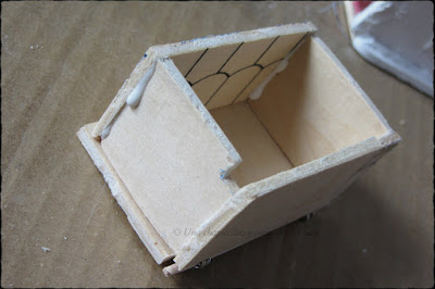 Corté las piezas necesarias y las pegué con cola. Como se puede apreciar en la foto, en una de las piezas hice un hueco para pasar los cables con sus interruptores.