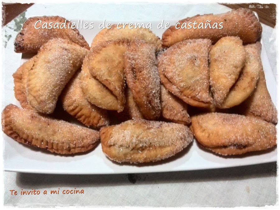Pasado el tiempo vamos formando una especie de empanadillas y rellenando con la Crema de castañas.