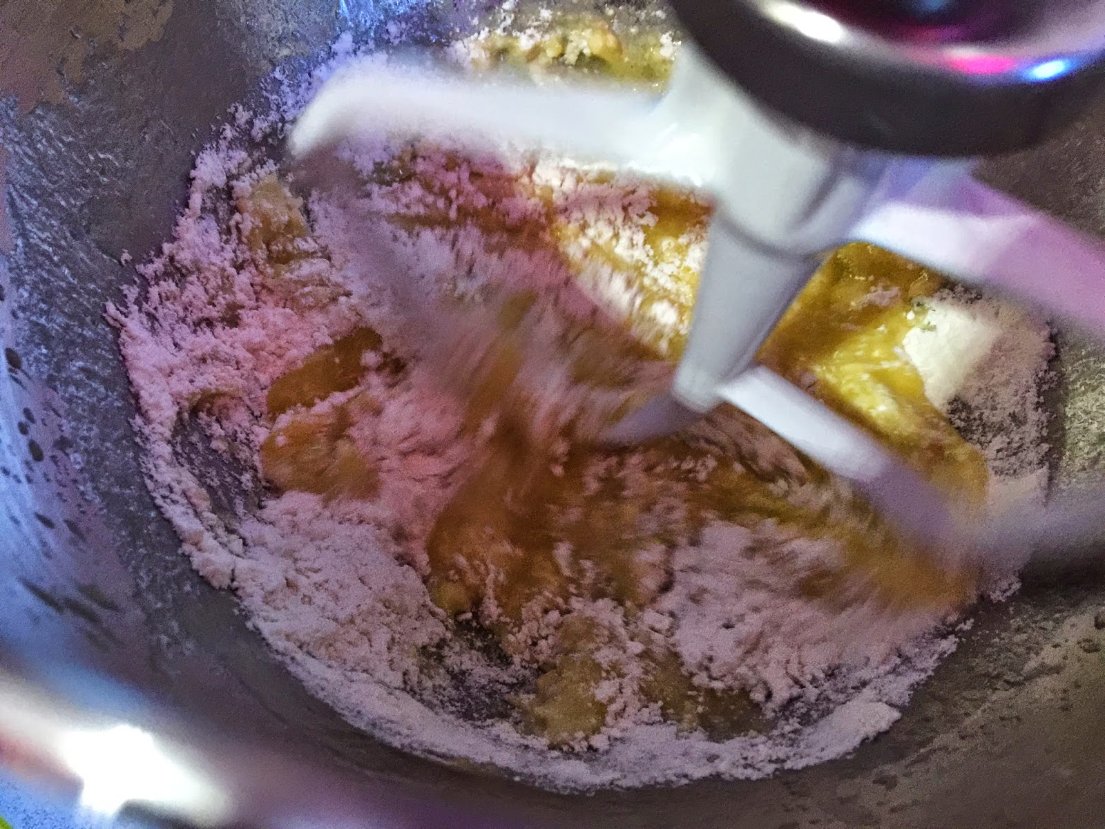 3. A continuación añadiremos la manteca de cerdo a temperatura ambiente, la mantequilla derretida, la yema de huevo y la levadura en polvo. Seguimos batiendo hasta que tome consistencia de una crema.