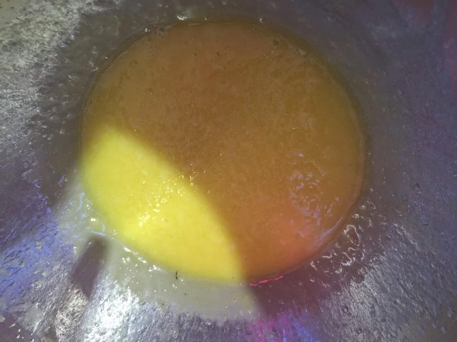 Para freírlas mezclaremos dos vasos de aceite de girasol y un vaso de aceite de oliva vigen extra. Pondremos el aceite a calentar, a fuego medio y añadiremos la piel del limón, la piel de la naranja y la rama de canela partida por la mitad. Dejaremos que fría durante 12-14 minutos. Pasado este tiempo, apagaremos el fuego y reservaremos para mas adelante. Importante que no quitéis todavía las pieles y la canela.