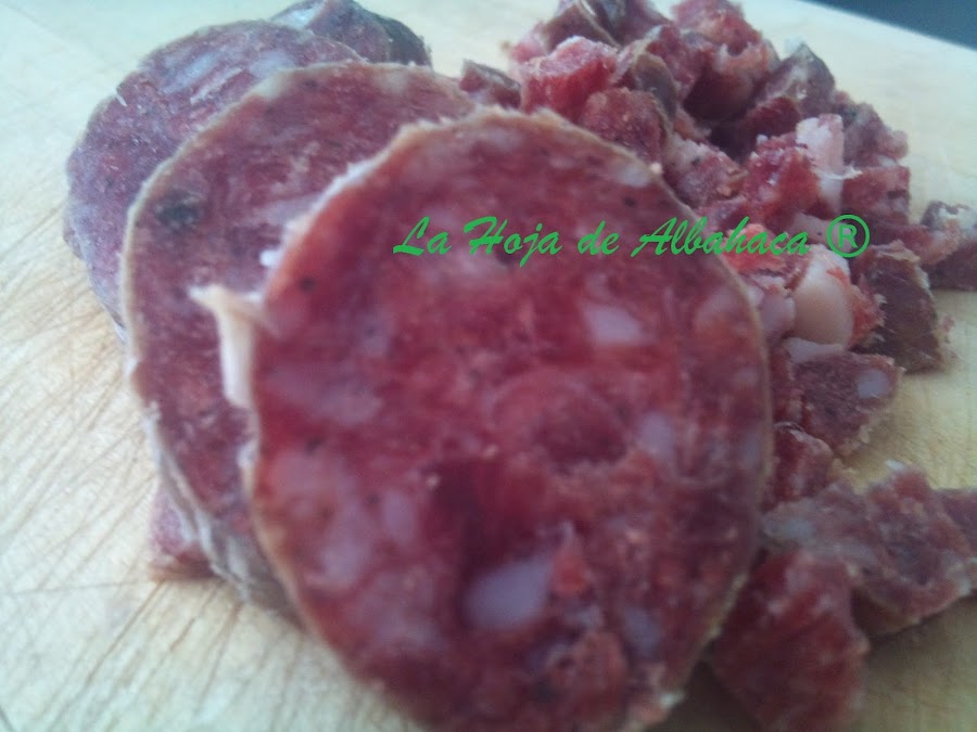 Nosotros hemos probado a hacer dos versiones, una como en la receta original, utilizando el salami tipo napoli, y para la otra hemos intentado buscar un salami parecido aquí en España.