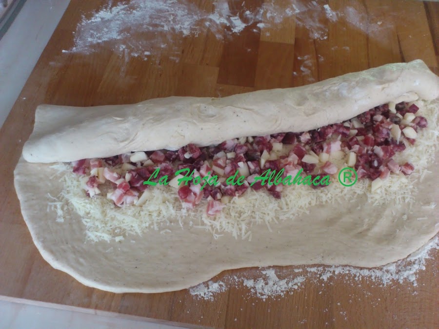 Os proponemos una rosca salada que lleva todos los sabores del sur de Italia, salami, queso provolone, queso pecorino y muchos más.