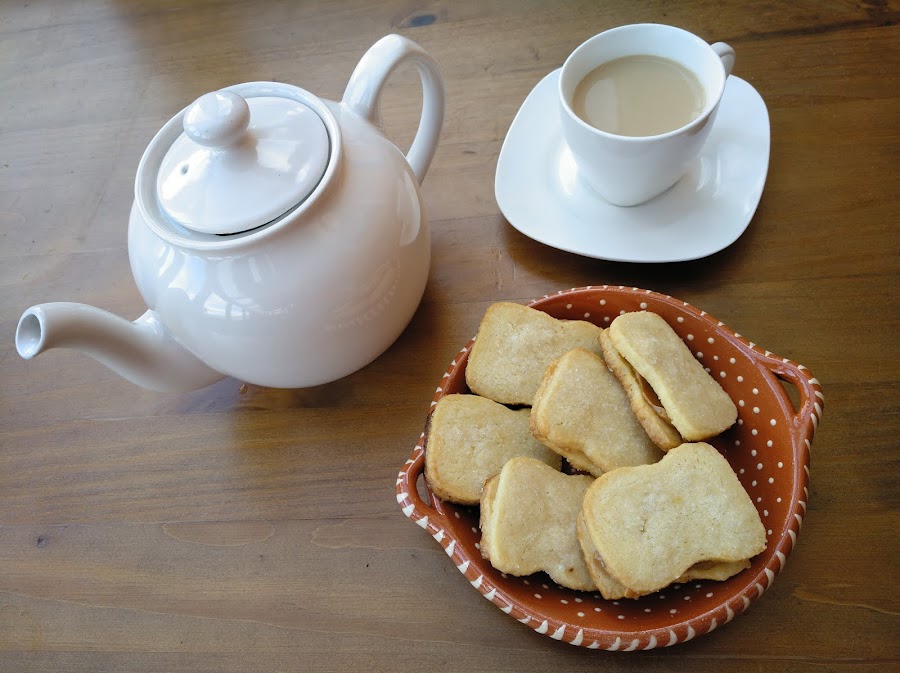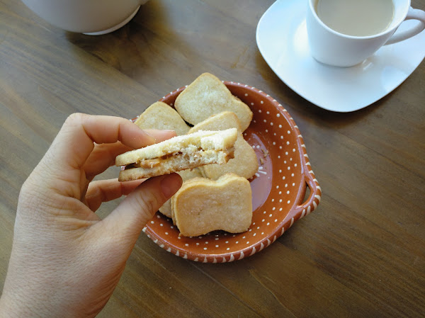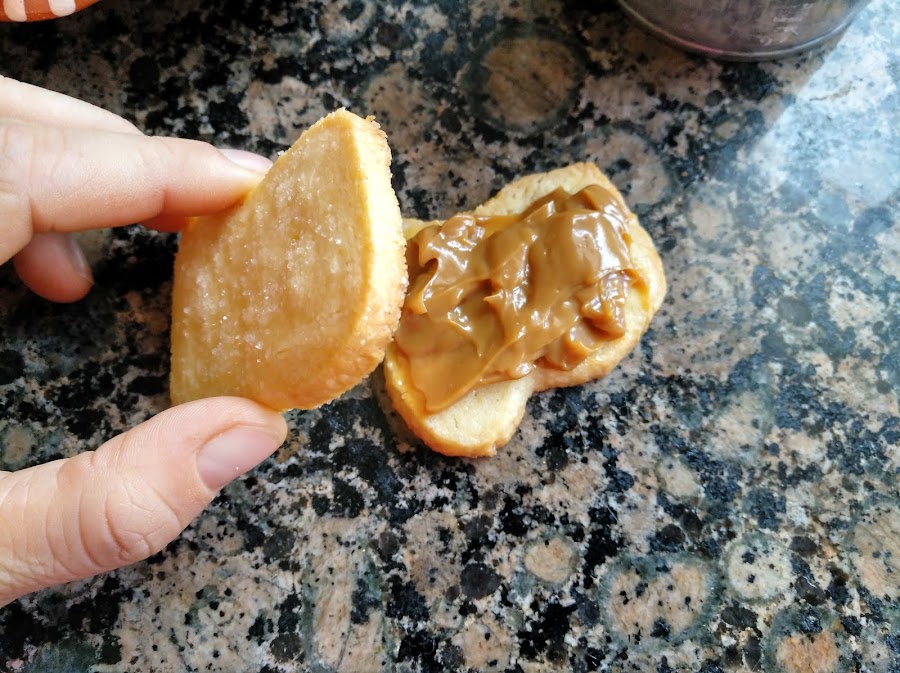 Cuando estén listas, dejar enfriar y untar las galletas que no tienen azúcar por encima con dulce de leche.