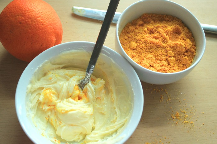 Luego de haber hecho mi polvo de cáscara de naranja lo usé enseguida en un pastel de zanahoria, en la masa y en la crema con la que lo decoré, sobra decir que fue un éxito.