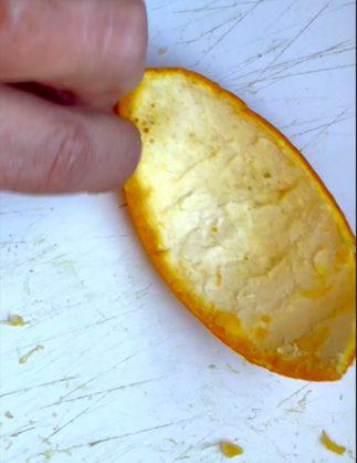 1-Cortar en gajos las cáscaras y quitar la pulpa y algo de la parte blanca.