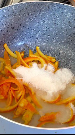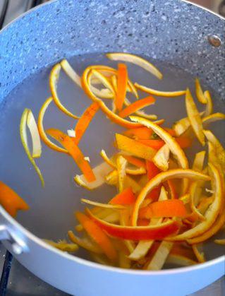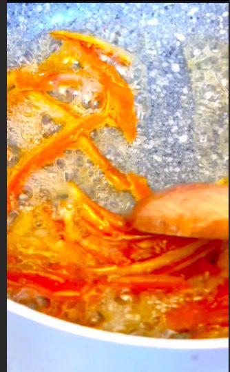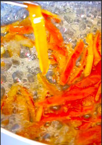 10-Cocinar hasta que el almíbar esté espeso y las cáscaras brillantes