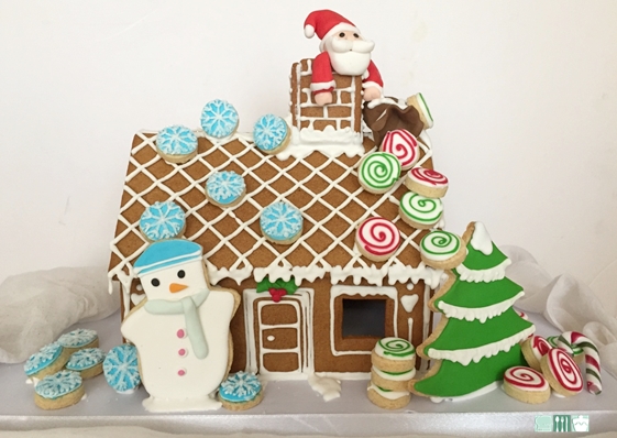 La galleta de la casita es de las que tienen en Ikea listas para montar. Solo que yo hice algunas galletas mas de mantequilla, en este enlace la receta, y la glasa para utilizar de pegamento para montar la casa la encontrareis aquí o también en las instrucciones del paquete.