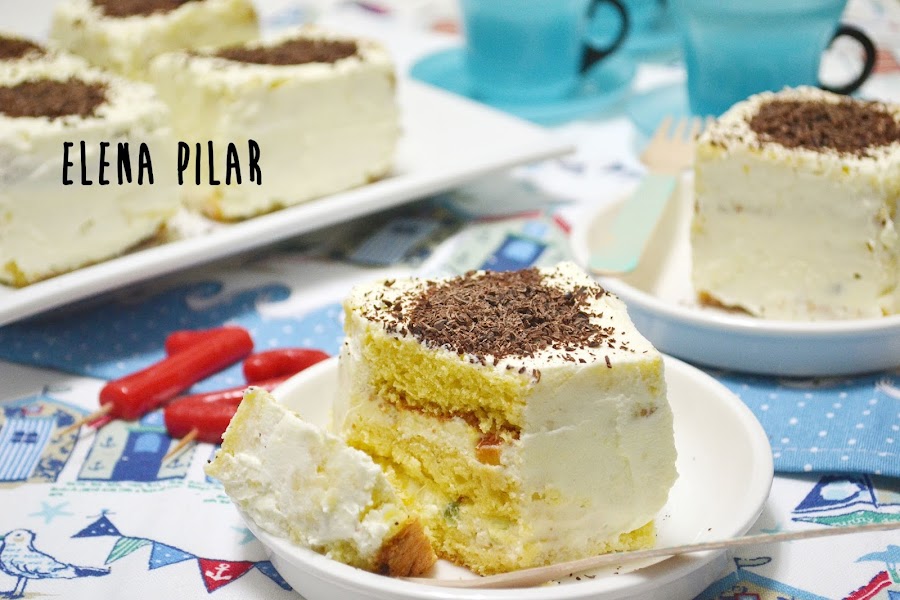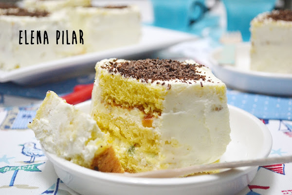 Se trata de una cassata, que he presentado en porciones individuales. Tres finas capas de bizcocho hiper empapadas en ron entre las que he extendido una generosa cantidad de un cremoso y suculento relleno a base de queso fresco, fruta confitada e higos secos.