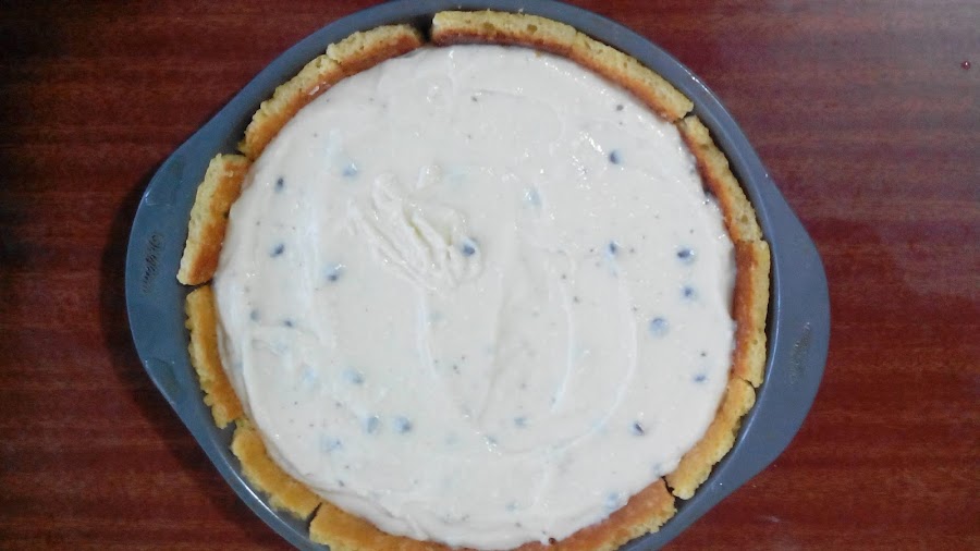Agregamos el relleno de Ricotta y damos unos golpecitos para eliminar cualquier burbuja de aire atrapada.