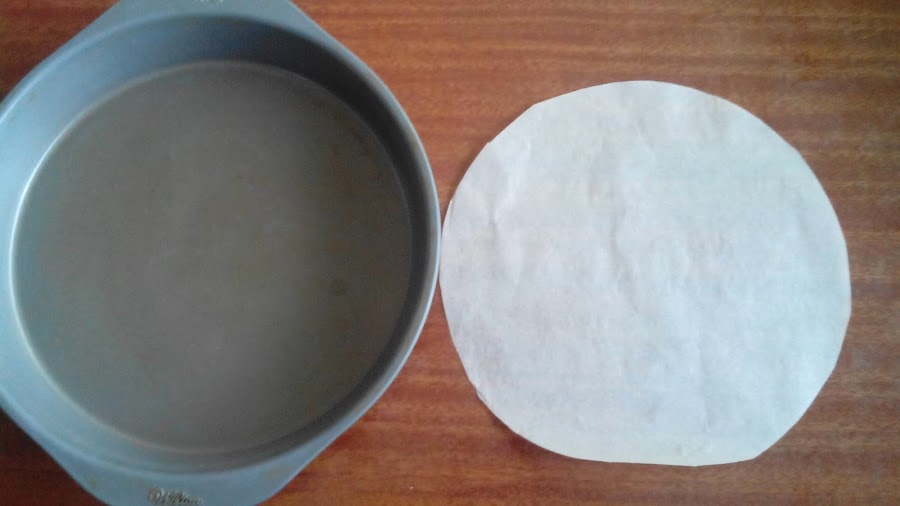 Mientras está listo el bizcocho podemos hacer una plantilla con papel de cocina del tamaño del fondo del molde donde vamos a ensamblar la Cassata.