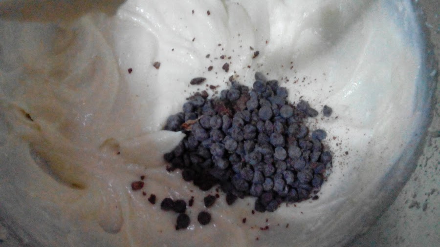 Agregamos las chispas de chocolate y mezclamos suavemente.