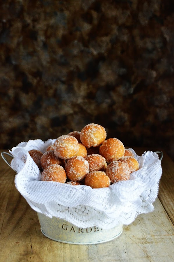 Los castagnole son un dulce de carnaval originario de Italia. Los descubrí gracias a uno de mis blogs preferidos, "Kanela y limón", y desde aquella los hice ya un montón de veces.