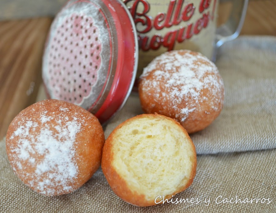 He preparado mi propia versión ya que no tenía ricotta por eso he usado queso crema y un toque de anís y el resultado ha sido espectacular. Una bolitas muy finas por fuera con un interior abizcohado muy tierno... una pasada de rico. Nos las comimos de una sentada.