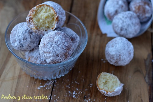 Las dejamos enfriar sobre papel de cocina y las rebozamos en una mezcla de azúcar común y azúcar glas a partes iguales.