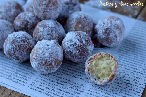 Terminamos amasando hasta que la masa no se nos pegue a las manos. Formamos bolas de unos 15 gr cada una y las freímos en abundante aceite hasta que se doren.