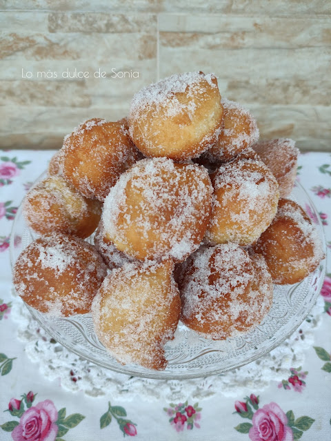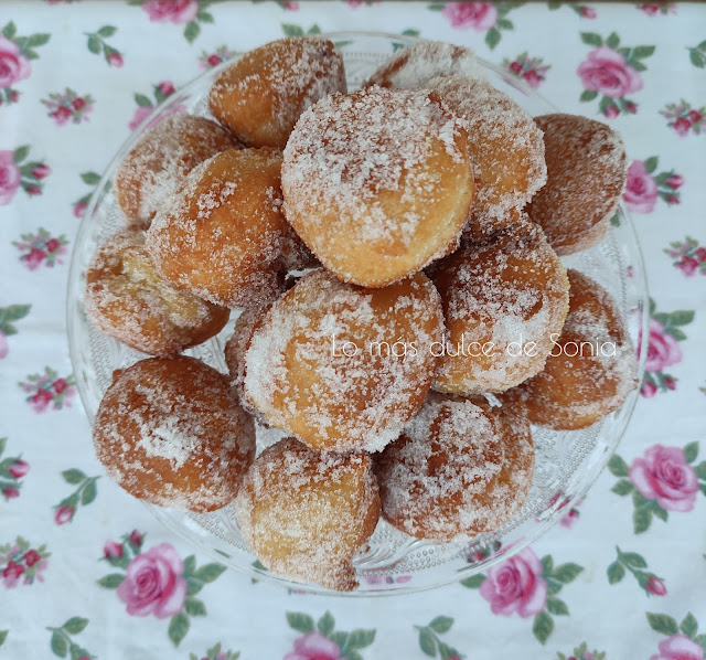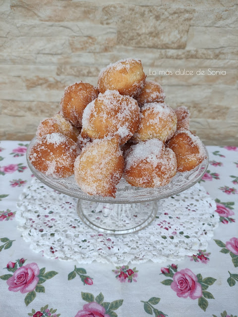 Preparamos un bol con azúcar. Vamos friendo e inmediatamente las vamos rebozando en azúcar.