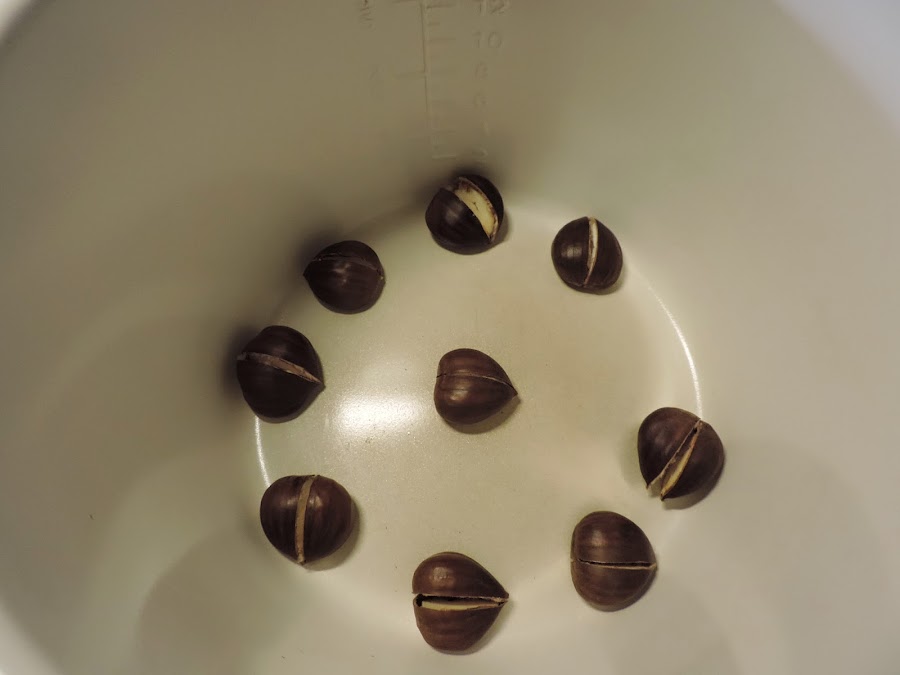 Hacemos un corte en la castaña.