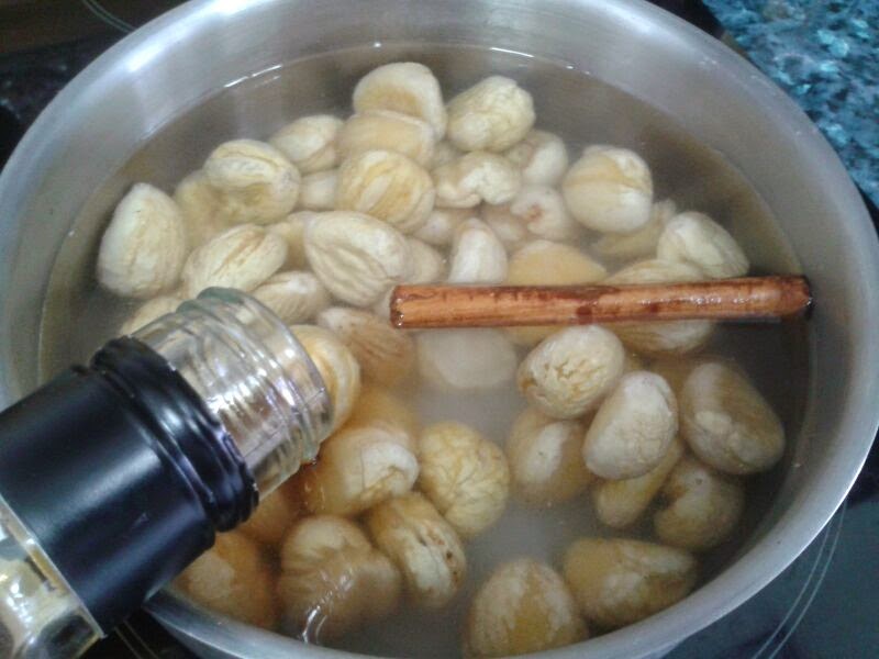Si las castañas son frescas, les quitamos la piel exterior y las metemos en agua caliente durante un rato para poder quitarles la piel interior.