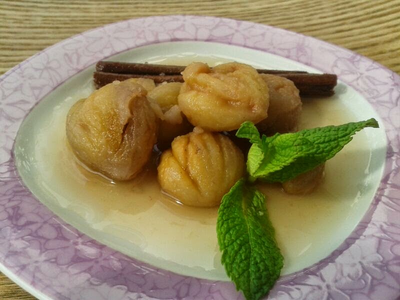 Las castañas en almíbar es un postre malagueño muy sencillo de realizar y fácil conservación. La castaña es un fruto seco que abunda en la Serranía de Ronda y es utilizada en múltiples preparaciones tanto en salado como en dulce.