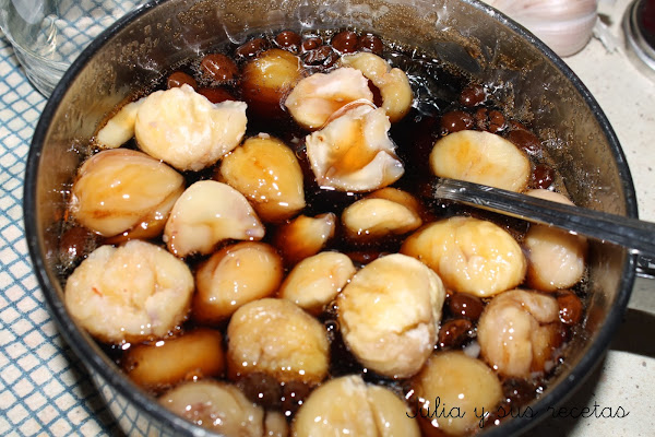 Añadimos las castañas con cuidado y las dejamos cocer