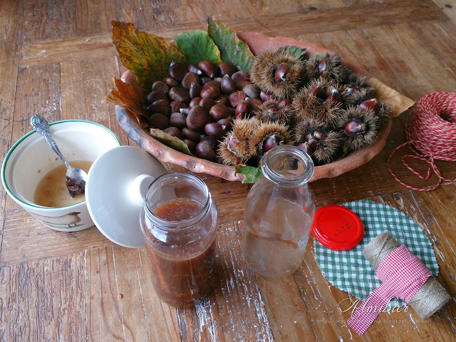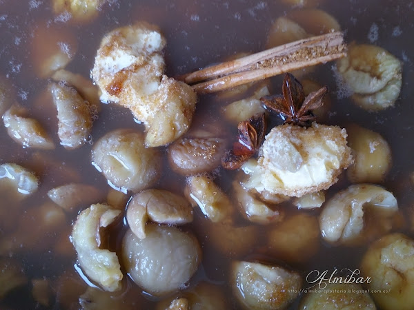...añades el agua de la cocción de las castañas colada o puedes incorporar como caldo un anís dulce destilado o simplemente agua...