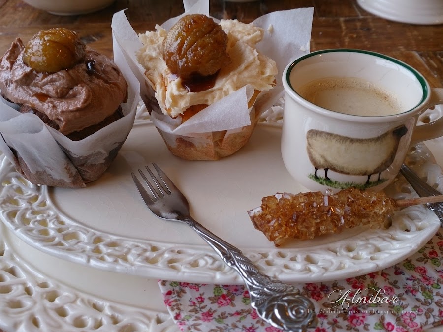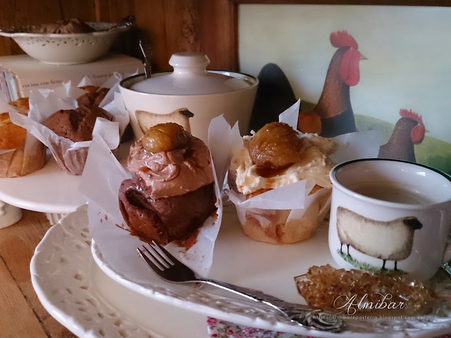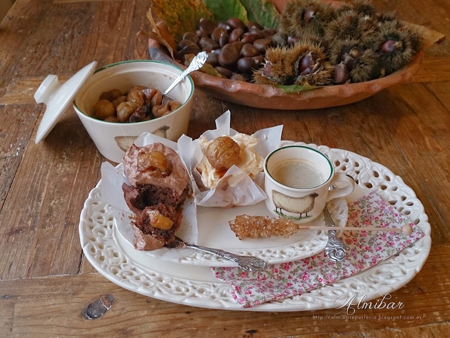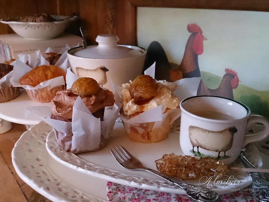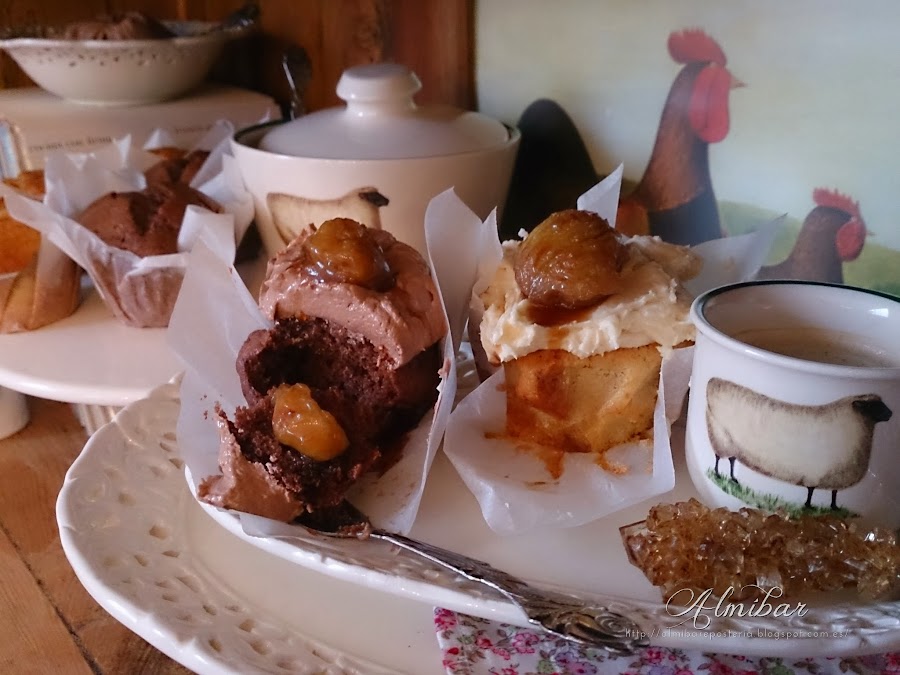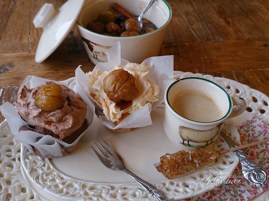 ...colocas encima de cada cupcake una castaña en almíbar...