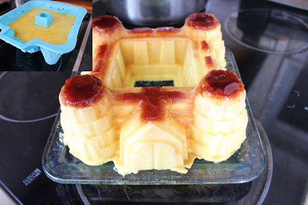 Como el molde de castillo es peligroso de desmoldar, sin que se nos rompa alguna torre, recomiendo congelar el postre, desmoldarlo congelado y dejar descongelar en el frigorífico.